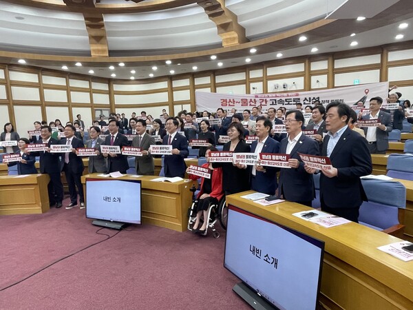 ‘영남권 물류 혁신을 위한 경산~울산 간 고속도로 신설’ 정책토론회가 조지연 국회의원(경북 경산시), 김기현, 박성민, 서범수 국회의원(울산) 공동 주최로 16일 국회의원회관에서 열렸다.