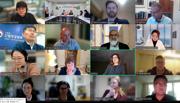 영상회의로 열린 이번 위원회에는 우리나라 수석대표로 남송희 국제산림협력관이, 캐나다 측에서는 조이스 헨리 통상경제산업국장이 참석해 ▲기후재난 심화에 대응한 산불 공동대응 ▲탄소중립 실현을 위한 목조건축 활용 확대를 핵심 의제로 심도 있는 논의를 진행했다.
